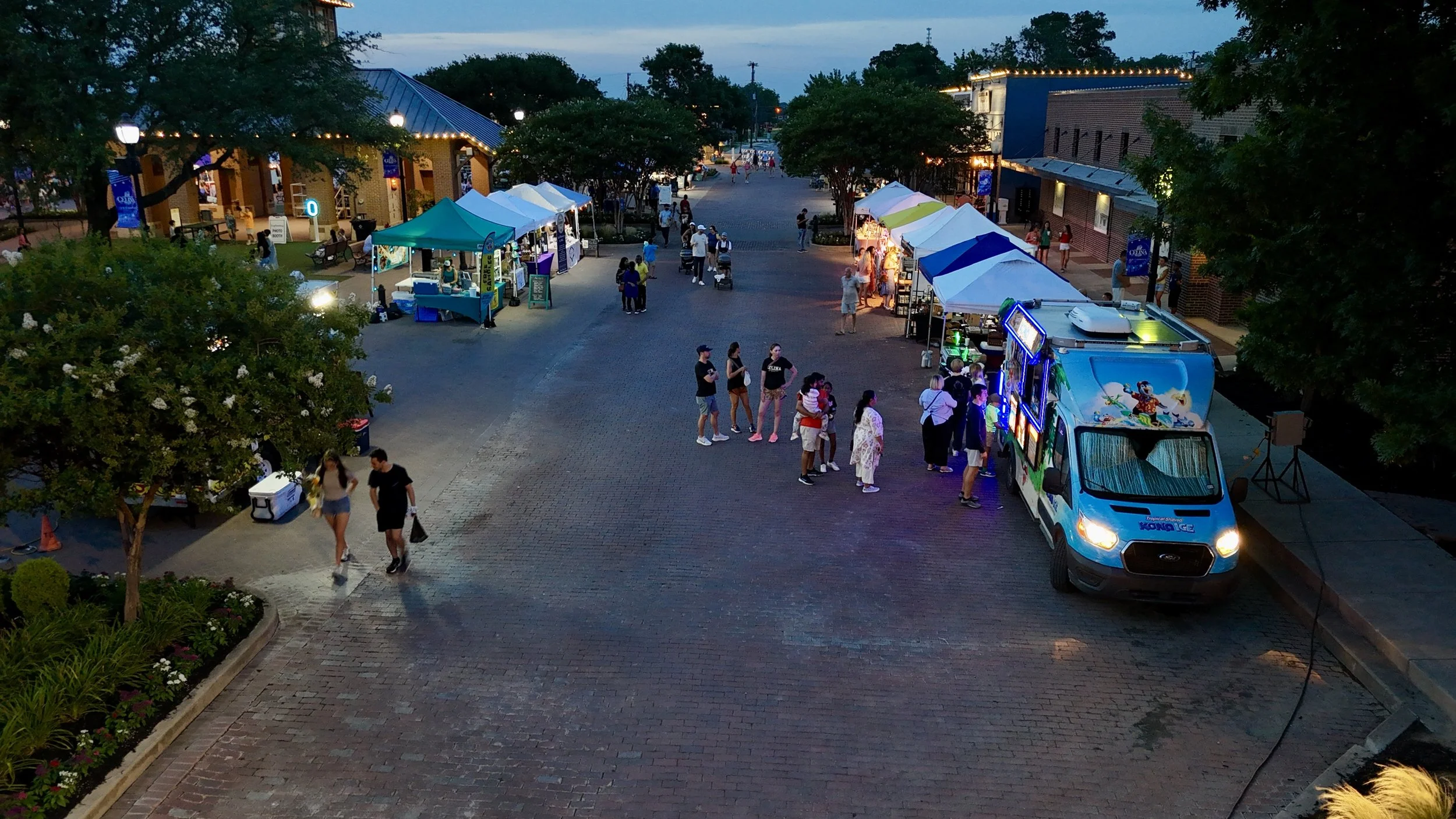 At Downtown Celina at the Square, a different kind of Friday night lights takes over. Pop-up tents stretch across brick roads. Music moves between storefronts. Families linger. Neighbors stop and talk.